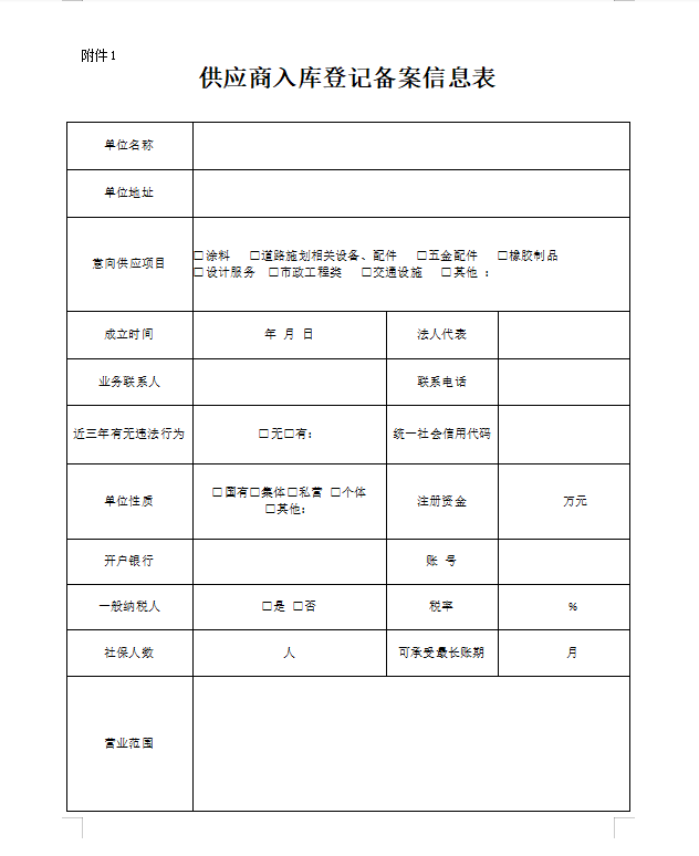 關(guān)于公開征集供應(yīng)商入庫的公告